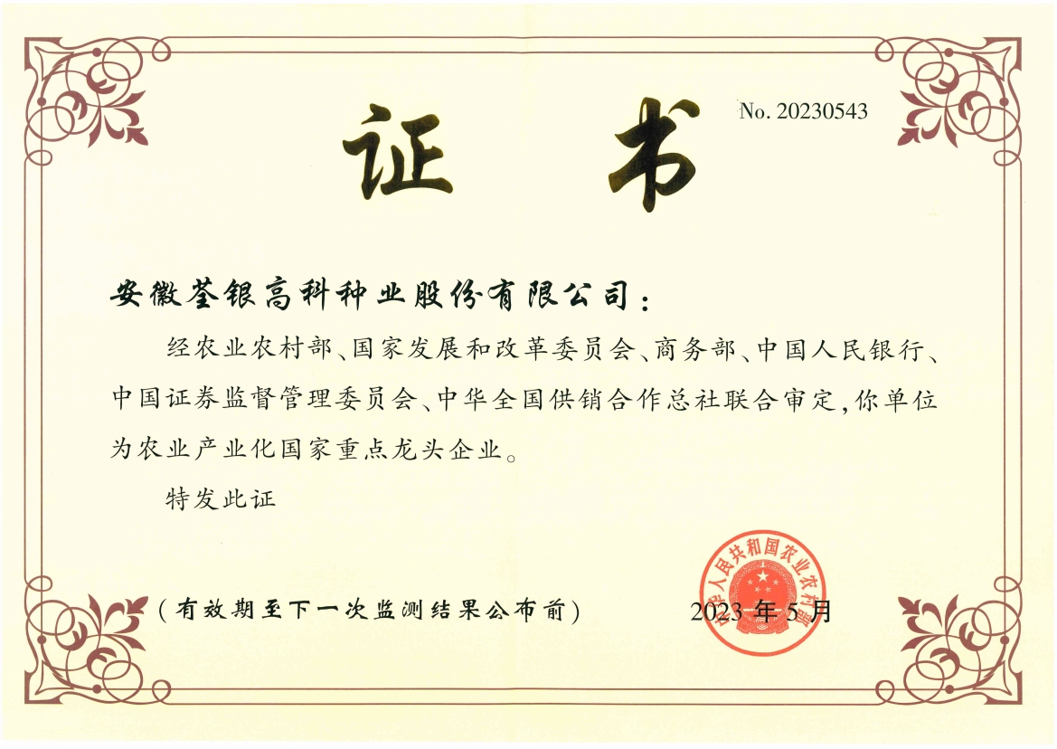 安徽荃銀高科種業(yè)股份有限公司是一家“以種業(yè)為核心、農(nóng)業(yè)服務(wù)為延伸、探索和創(chuàng)新農(nóng)業(yè)多元化發(fā)展”的現(xiàn)代高科技種業(yè)上市公司,證券代碼:300087。公司注冊資金9.47億元,系“中國種業(yè)領(lǐng)軍企業(yè)、農(nóng)業(yè)產(chǎn)業(yè)化國家重點(diǎn)龍頭企業(yè)、國家高新技術(shù)企業(yè)、農(nóng)業(yè)部首批農(nóng)作物種子育繁推一體化企業(yè)、中國種業(yè)信用明星企業(yè)"。在國內(nèi)控股子公司20多家,在國外設(shè)立分支機(jī)構(gòu)4家,良種銷售至全國20多個(gè)?。ㄊ?、區(qū)),出口覆蓋20多個(gè)國家與地區(qū),種業(yè)綜合實(shí)力、雜交水稻研發(fā)、推廣及海外業(yè)務(wù)規(guī)模均居全國種子企業(yè)前2位。